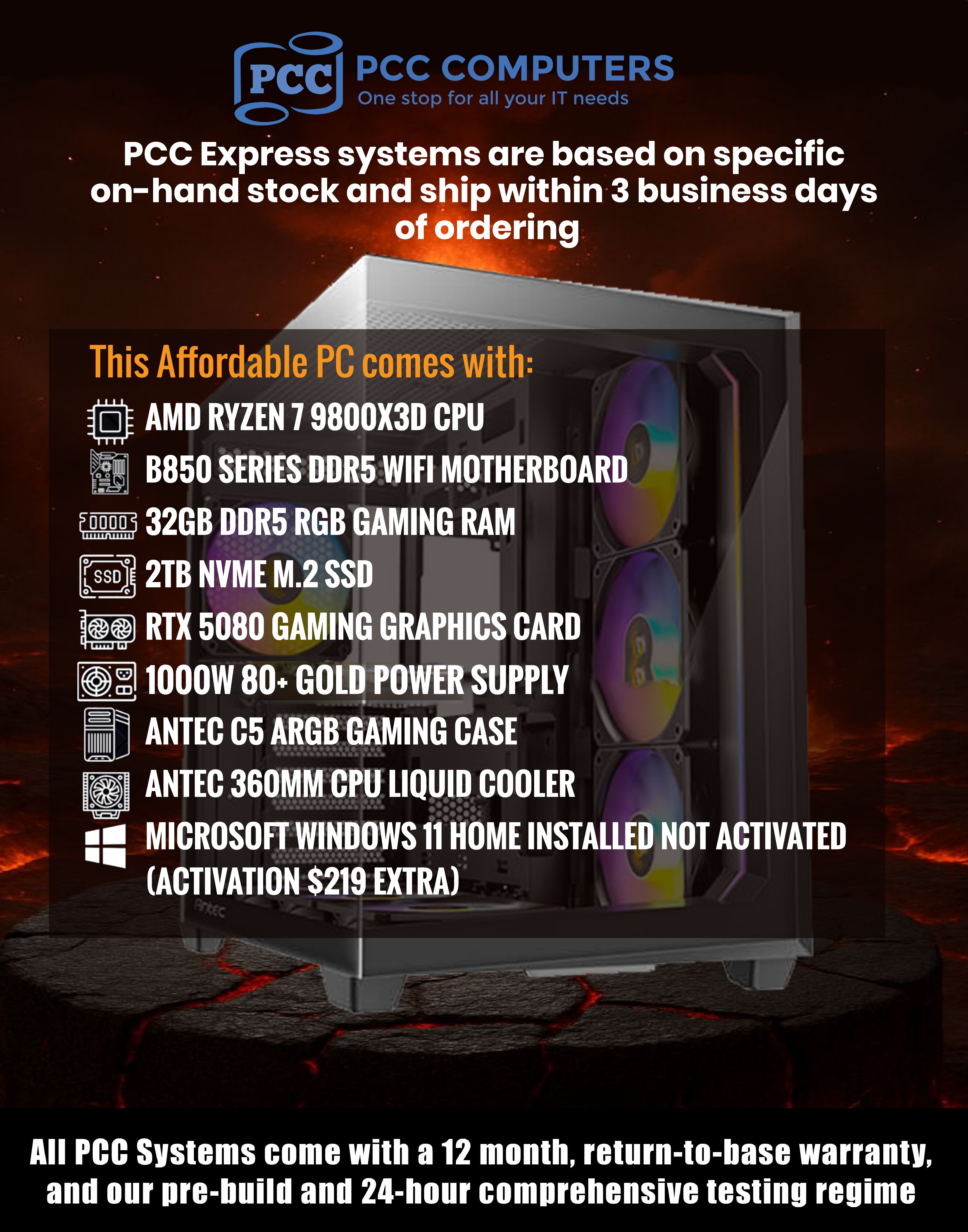 AMD RYZEN 7 9800X3D | RTX 5080 GAMING DESKTOP PC