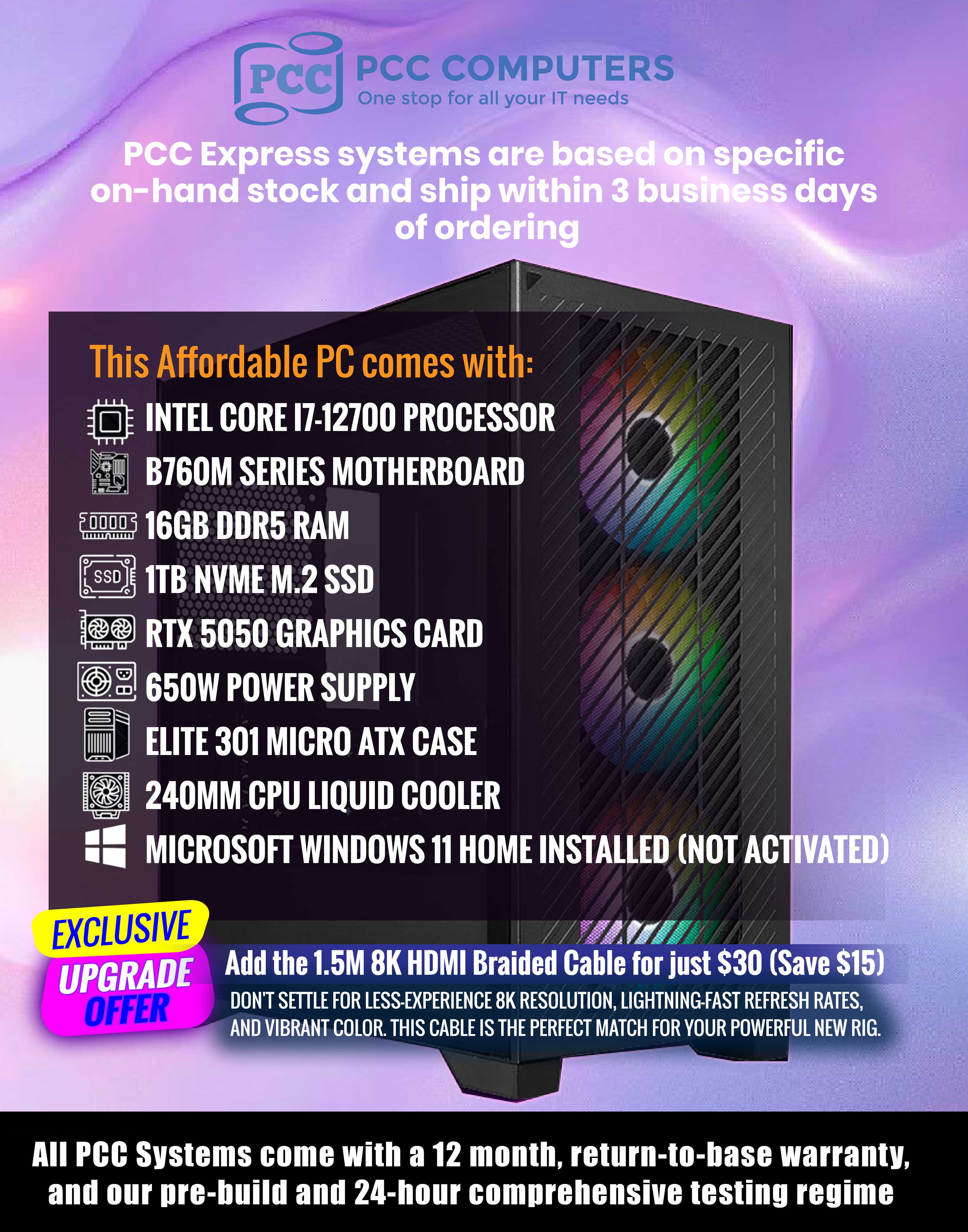 INTEL I7 12700 | RTX 5050 GAMING DESKTOP PC