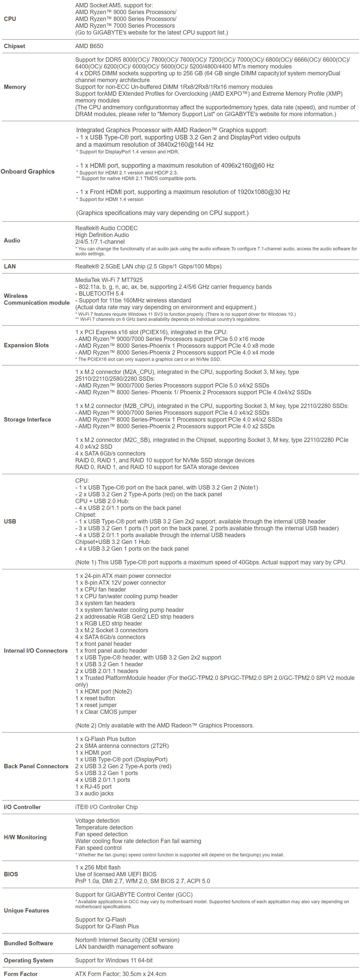 Gigabyte B650E AORUS STEALTH ICE Wi-Fi 7 AM5 ATX Reverse Connector Motherboard in striking white. Supporting AMD Ryzen™ 9000/8000/7000 Series Processors, it features Dual Channel DDR5 with 4 DIMMs and AMD EXPO™ support. Enjoy fast networking with 2.5GbE LAN and Wi-Fi 7, plus extensive connectivity options including HDMI and USB-C with DP-Alt. Experience high performance and enhanced user experience with UC BIOS for seamless setup